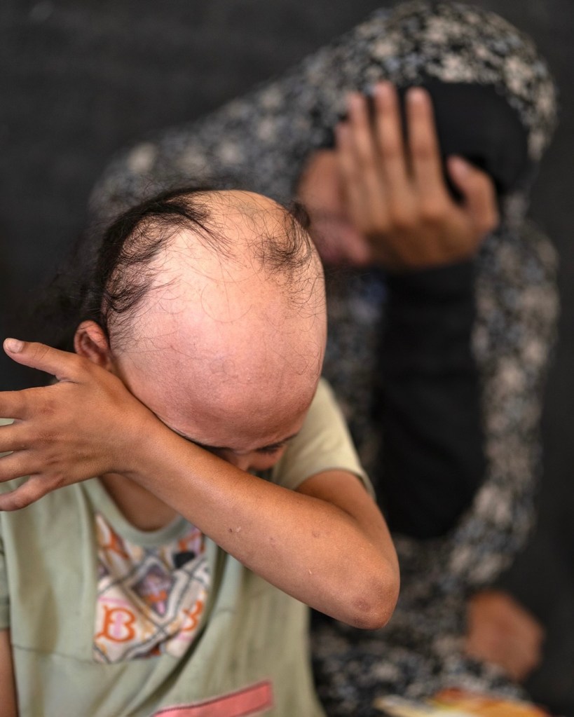 Young Sama lost all her hair through fear, a direct result of the mental trauma she experienced when tanks moved into the area where she lived in Gaza City. The terror of the event left a deep impression upon her mind, and the scars are not outward but inward.